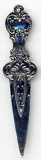 This bookmark is made in the US by Woodside Sterling Co. sometime between 1896 and 1920. It is marked with the manufacturers hallmark, Sterling and the number 361, probably a catalog number. It is very thin.
