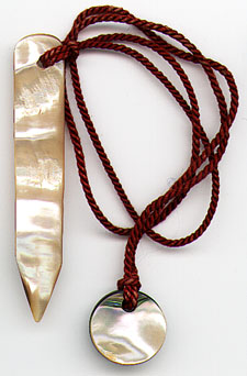 This bookmark was made in the US by an unknown manufacturer. It is made of Abalone shell. The date is unknown.