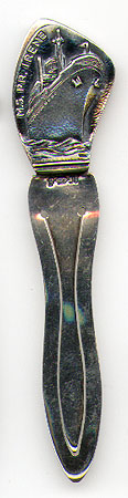 This bookmark was made in Holland between 1920 and 1930. It is hallmarked with two symbols and 90 for fineness of silver plate. The top is a picture of a ship, the MS Princess Irene.
