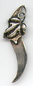 This bookmark was made in the US by an unknown manufacturer. It is marked only sterling on the back. It has a curved shaped blade with a figural of leaves as the top blade. The date is 1900 - 1910.