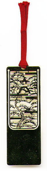 This bookmark was made in Japan. It is marked 24KGP for 24 karat gold plate. It is a very delicate cut-out design of an old tree. The date is 1998.