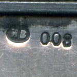 This bookmark was made in Europe. The top looks like two loops of silver filigree crossed and flattened. The same band can be seen at the top of the two blades underneath the loops. It is marked HB 800.